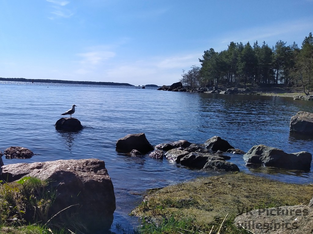 The coast of Luotsi-Kuusinen is rocky with alot of pebbles and larger rocks.