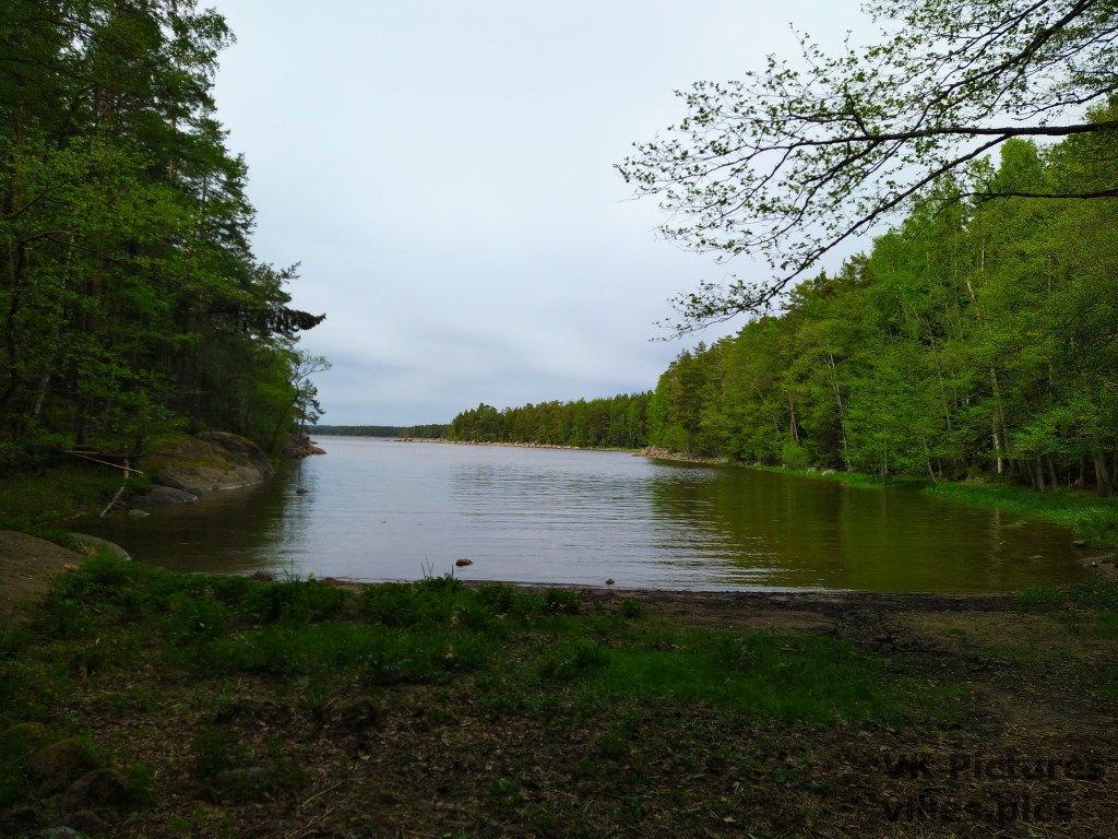 Right to the west of the large indrustial port of Mussalo, on the Mussalo island in the Baltic Sea, there is a small bay called Santalahti. The northern part of Santalahti has a resort, a camping area and a golf course. To the south-west of these is a natural bay that only has a few cottages on the coast, along with a hiking trail. This trail is divided into two paths. The shorter path is the one that leads to the coast of Santalahti. The longer path leads through the forest to the nort of Santalahti. I went to the shorter path and got some pictures from the coast of Santalahti.