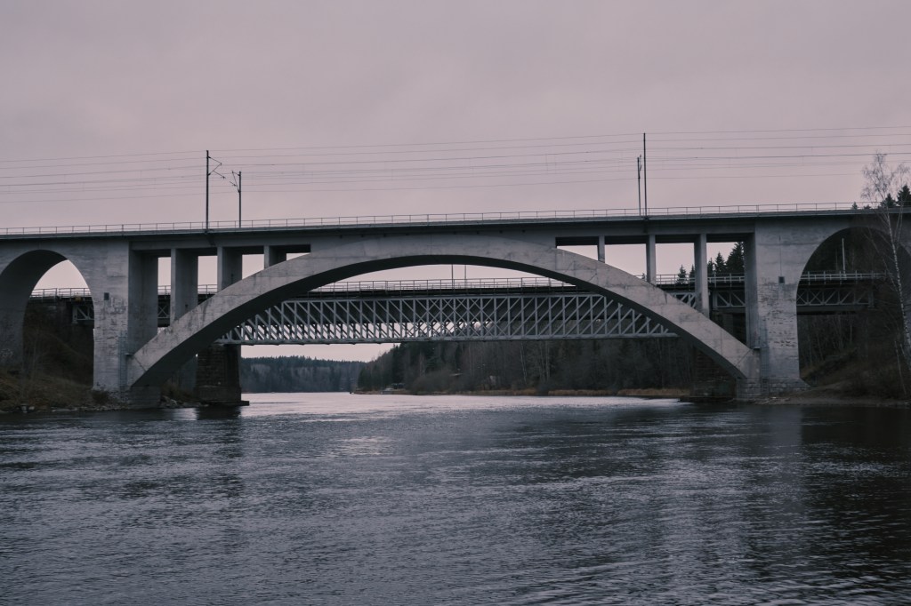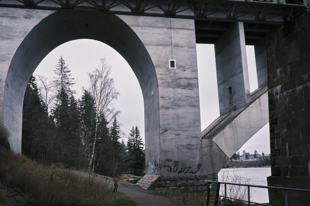 I recently visited the city of Kouvola. The weather was supposed to be clear and so I decided to ride a bike along a new path that goes along the Kymi River in Kouvola. The path is not accessible by bike in many places so I did not get to ride along the river for the whole time. Also, the weather report was completely wrong and grey clouds filled the entire sky during that day and for the rest of the week. I intended to see if I could get some nice pictures of the river, but I decided to focus more on the urban structures like bridges and factories along the way. The grey skies and the deciduous trees with no snow yet made the scenes look pretty boring so I had to edit the pictures alot to make the colours seem a bit more interesting. Kouvola is known stereotypically as a boring and grey city so maybe the moods of these pictures are fitting. I also took pictures with black and white film, which I will show in a second part.