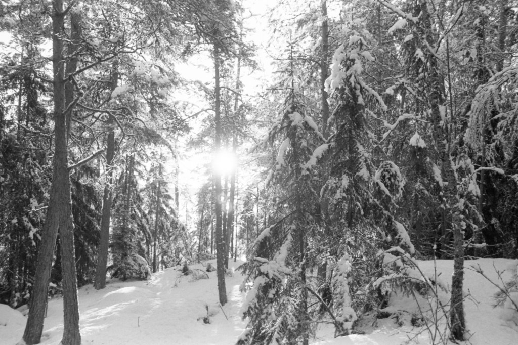 I took some pictures while walking through both the paths and from the frozen beach at the Santalahti resort. I got a new 28 mm lens in addition to my 50 mm lens that I had been using for my Pentax K1000. Some of these pictures are taken with the wider 28 mm lens and some with the 50 mm. The film I used was Kodak Tri-X 400, which I think might not be the best film for these landscape shots, but I bought alot of it a while ago so I will use it up.