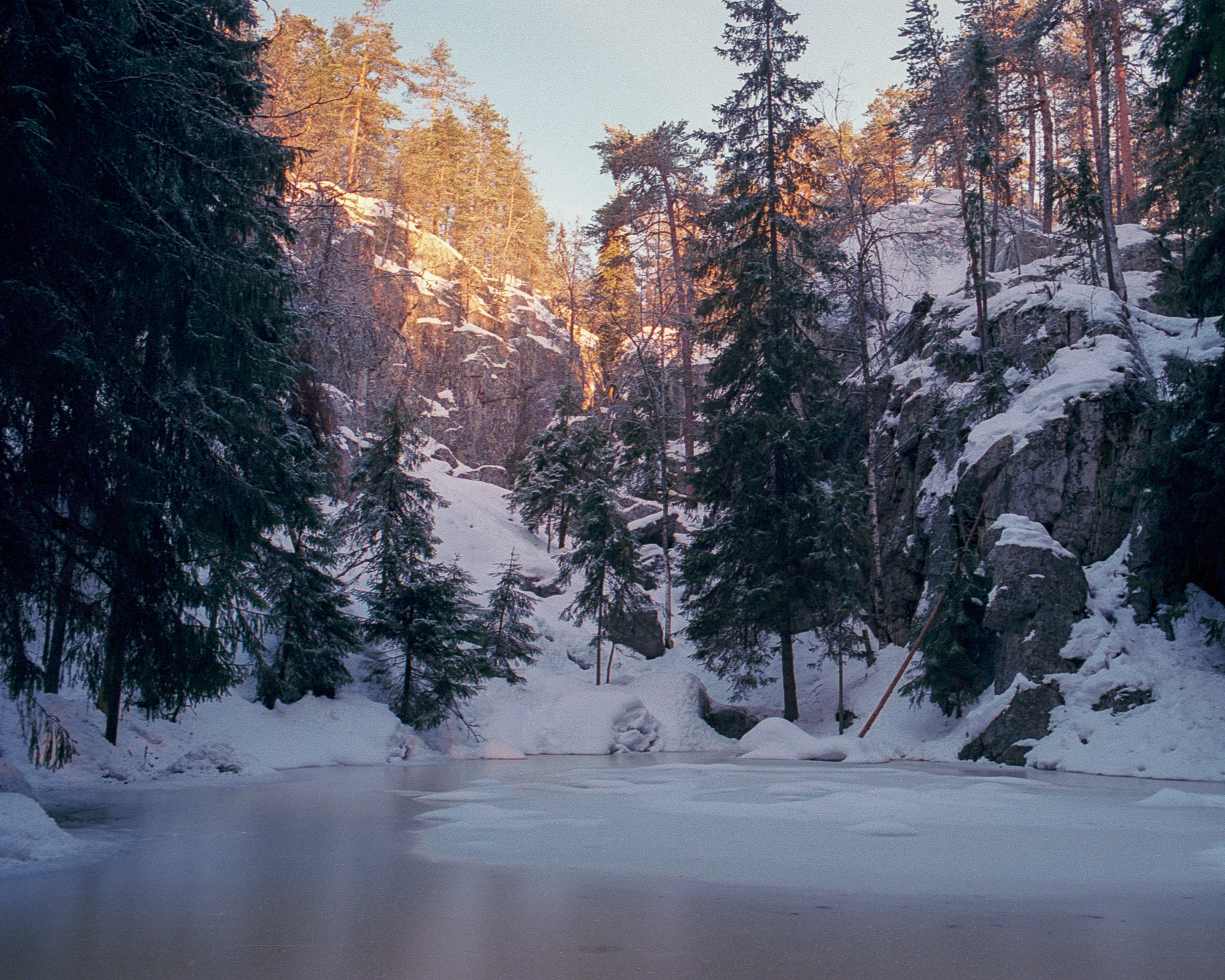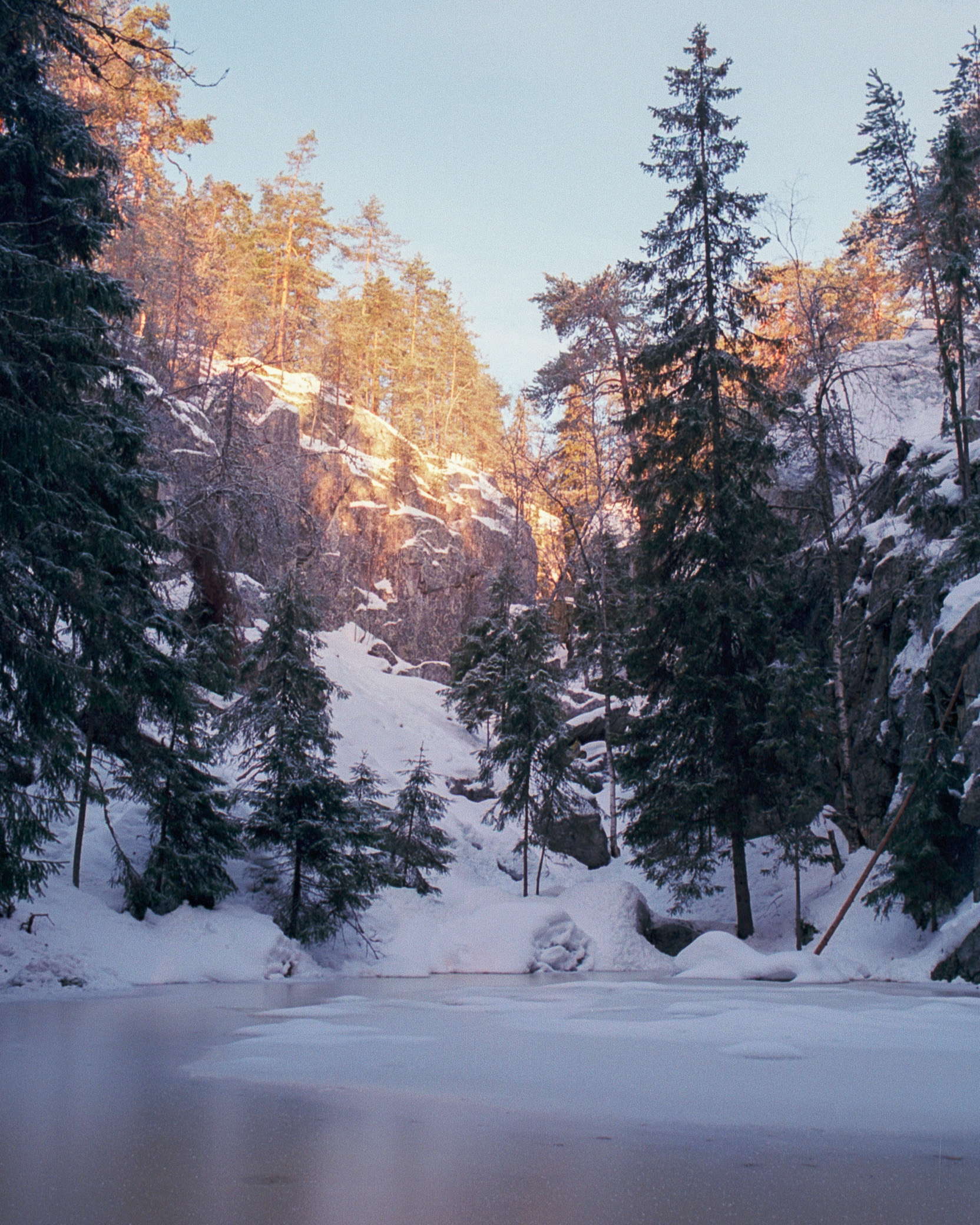 I went to Tiirisma in early morning during a clear winter day to take these pictures. Just before this trip, I got myself a new backpack and a small tripod so I can take pictures in low light and with a low-speed film. With the backpack I can now also carry both my digital camera and film camera at the same time. For this trip, I only had my film camera with Ektar 100 film. The tripod is small and light to fit in the backpack, but it was not the most stable. Still, I could not have taken some of these pictures without it, especially before it became brighter as the sun rose. Some of these pictures are still taken without the tripod.