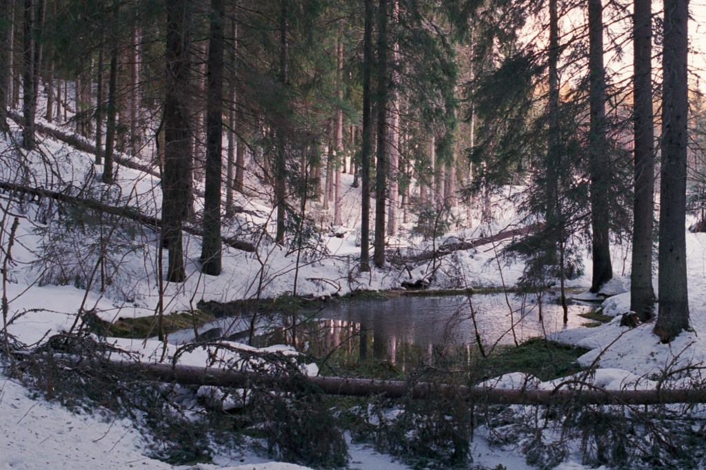 After the camping area, the path continued through the forests of Tiirismaa. A small stream near the path I went was partially molten despite it being a pretty cold day then.