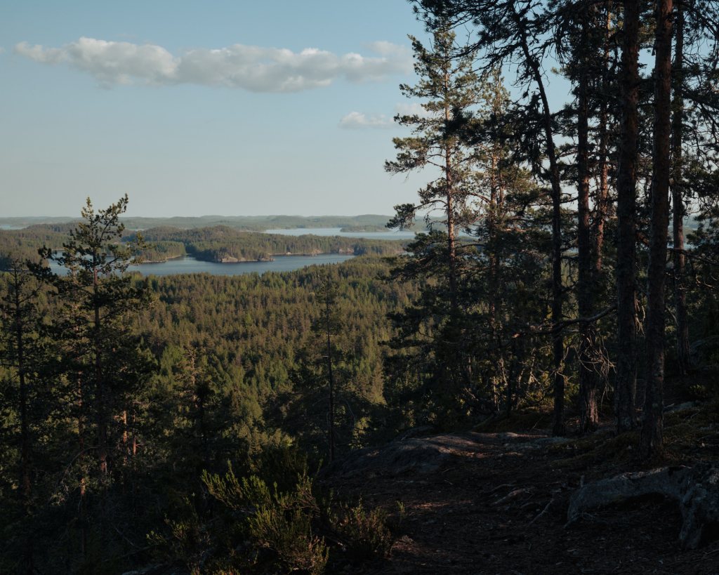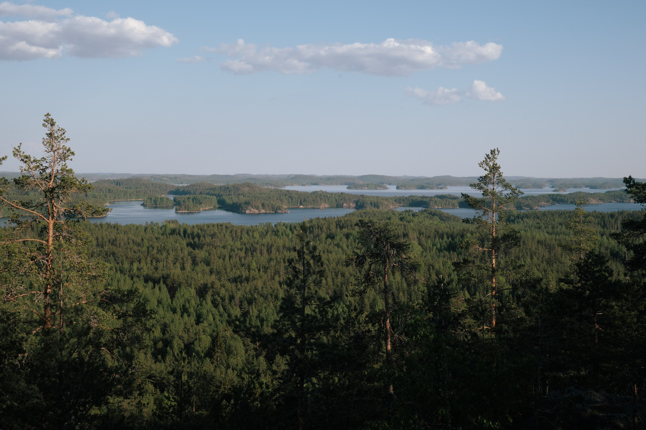 Lake luonteri, which is part of Saimaa, is visible from the hill. In the first two pictures here, the sun was shining just from right of the frame.