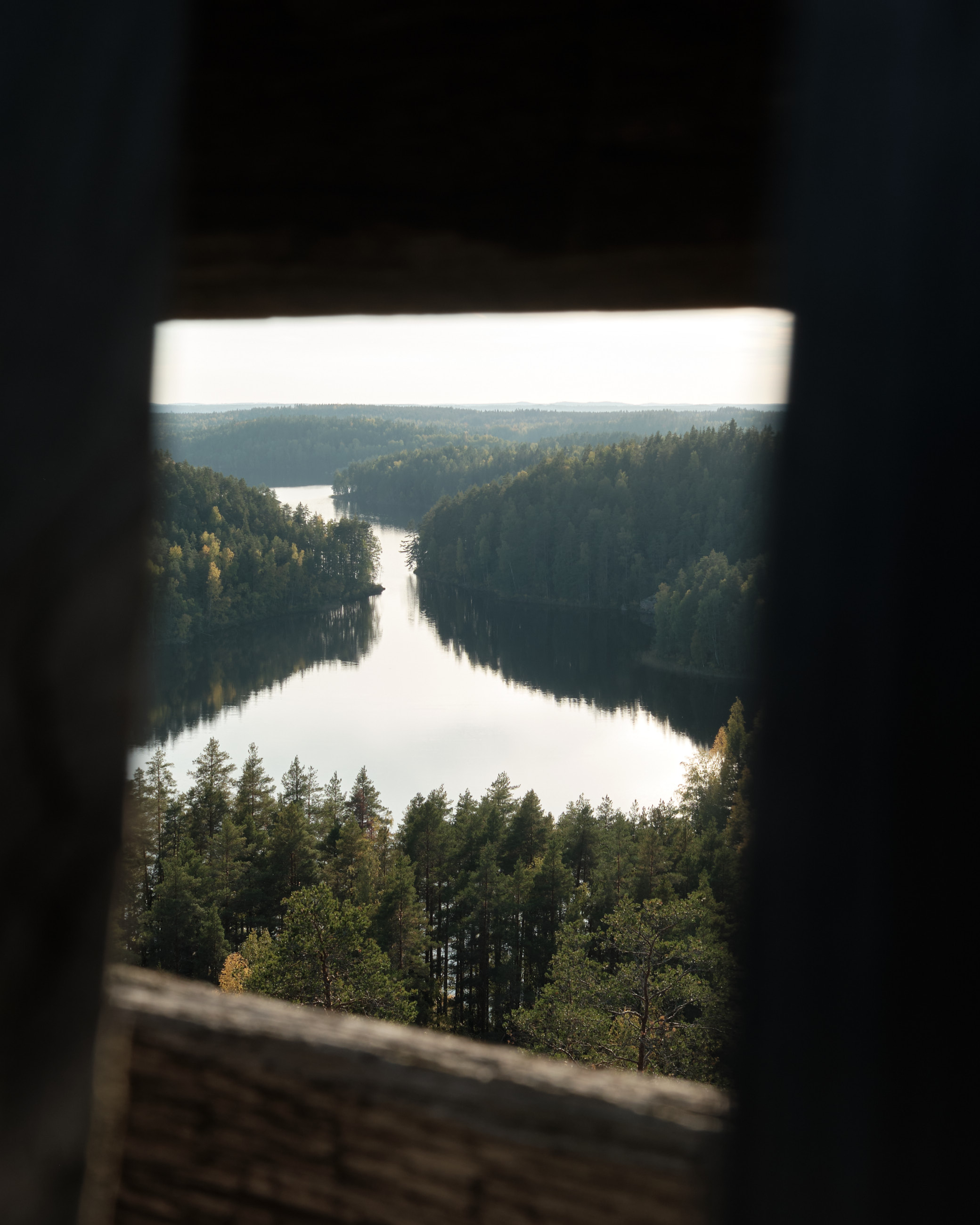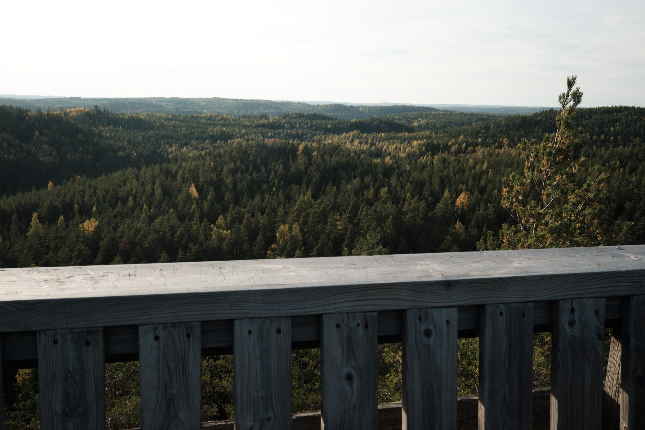 Olhavanvuori Hill has a viewing tower, and it is probably the highest spot in Repovesi. The sun was shining from a pretty bad direction for taking pictures, but I still tried.