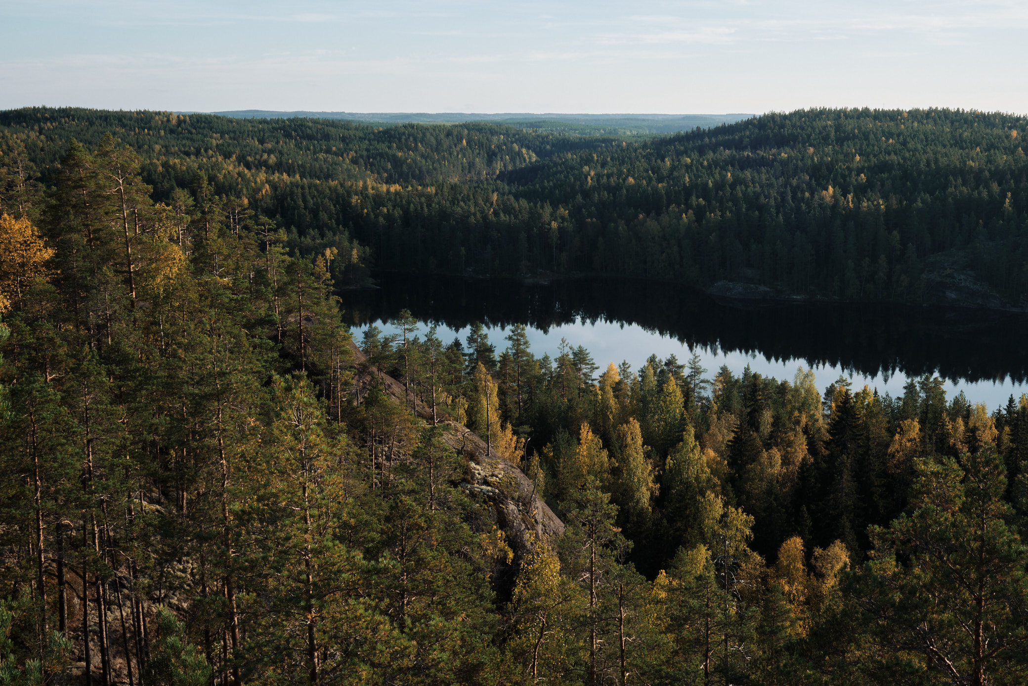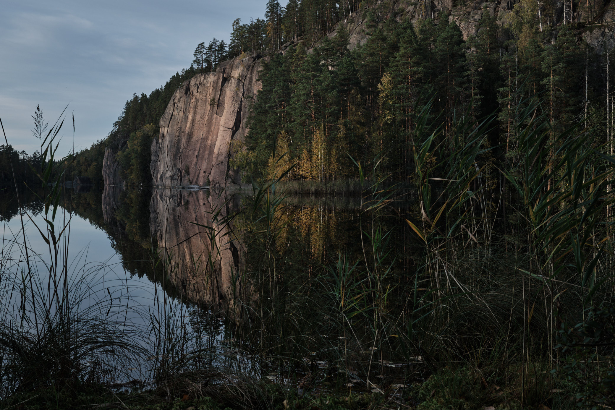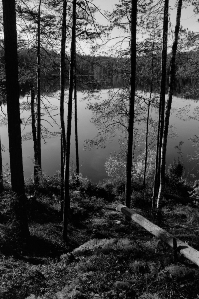 I went for a short trip to the Repovesi national park to take some pictures during early autumn. At Repovesi, there are some hills and lakes in the forest surrounding it. I arrived at the northern part during mid-day and only left after sunset. The color pictures are taken with a digital camera and black-and-white pictures are taken with film.