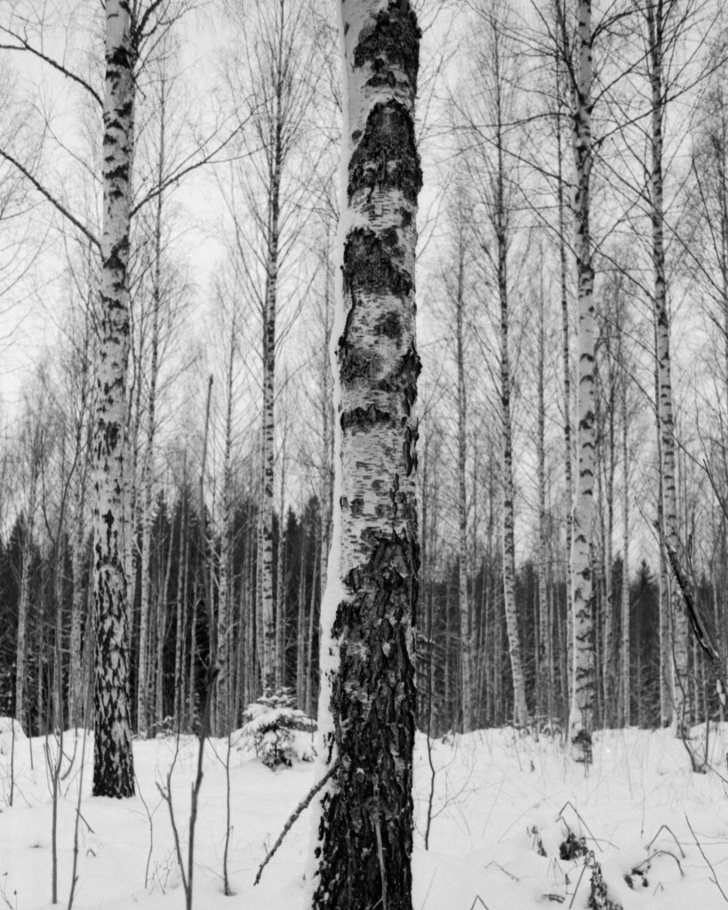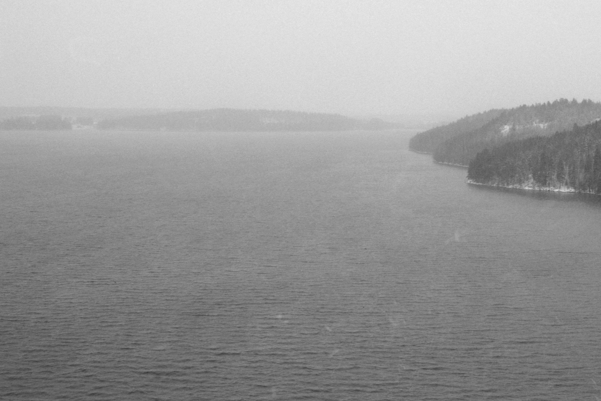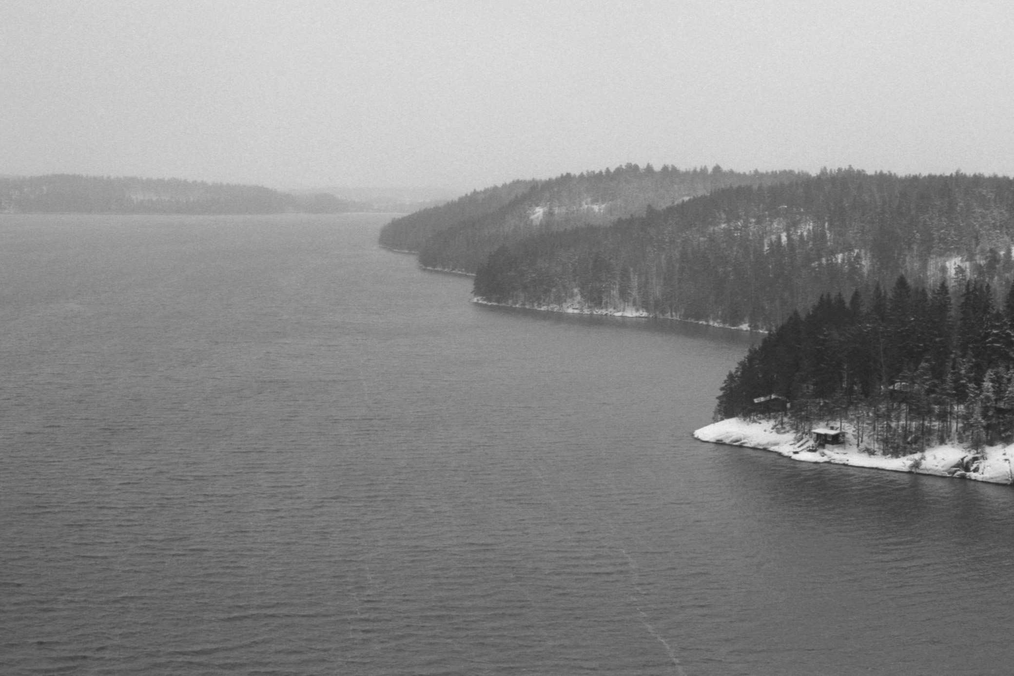 I took some pictures from a hill near the Pyhäjärvi lake and from the nearby Lamminpolku nature trail during a cloudy winter day. Pyhäjärvi lake is located on the border between two municipalities in southern Finland near the town of Artjärvi. Lamminpolku nature trail nearby goes to small hills to the east of Artjärvi. The color pictures here are taken with a digital camera and the black-and-white pictures are taken with film.