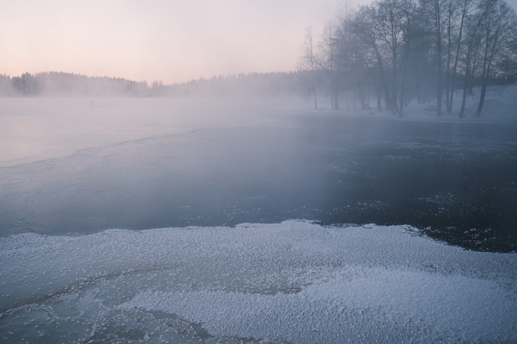 There was a lot of fog at the coast of the Pihlajanvesi lake.