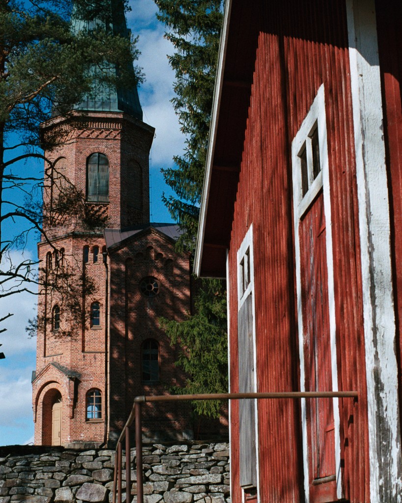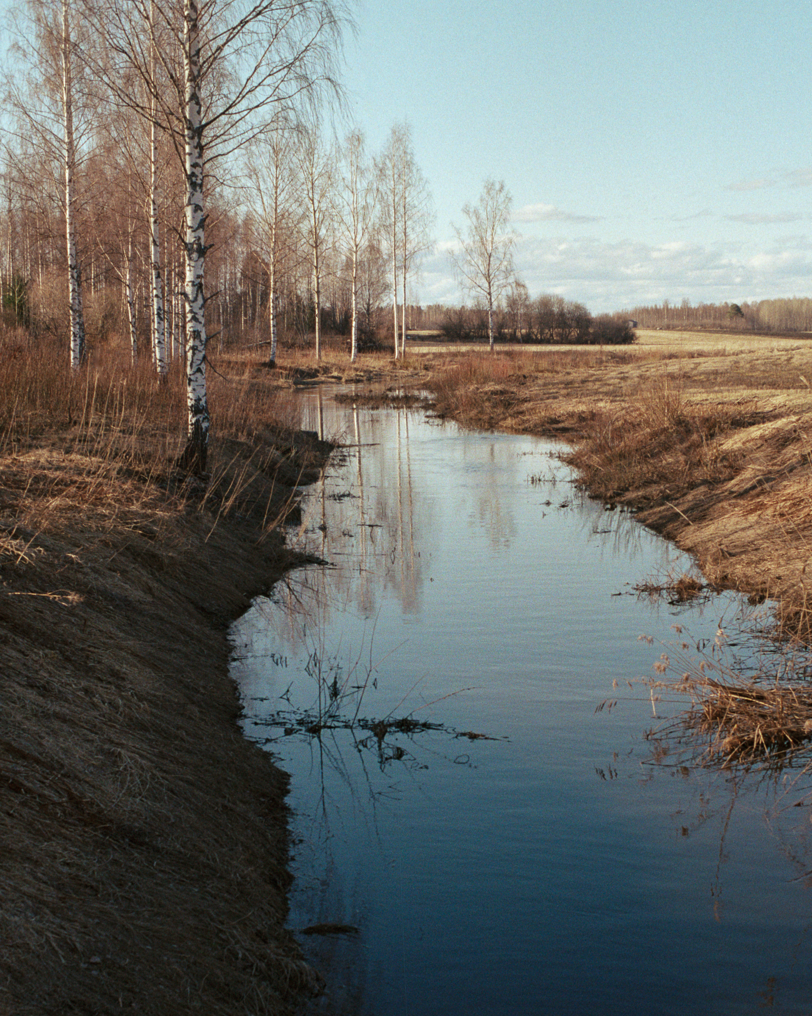 I took the following pictures from the town of Liperi during early spring. The snow had mostly melted but the only greens were from the plants that remained green during winter as the rest did not have time to grow back yet. I walked from the church in the town in to the countryside through mostly dirt roads. The weather was good and the nature was starting to look alive after winter.