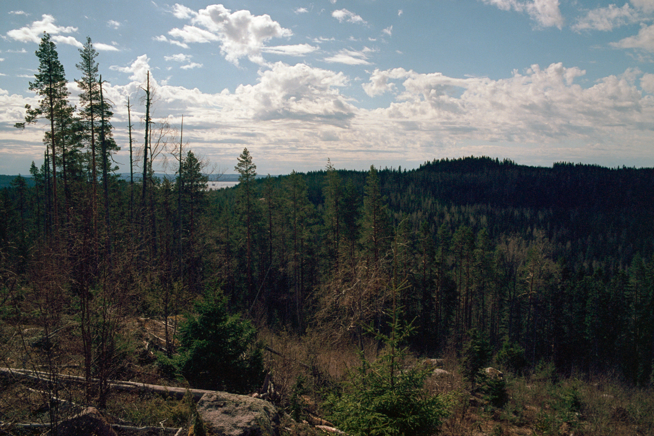 After walking through the forest, I arrived to the Hakolanvuori hill. There were a few places that had less trees from where the landscape around the hill was visible.