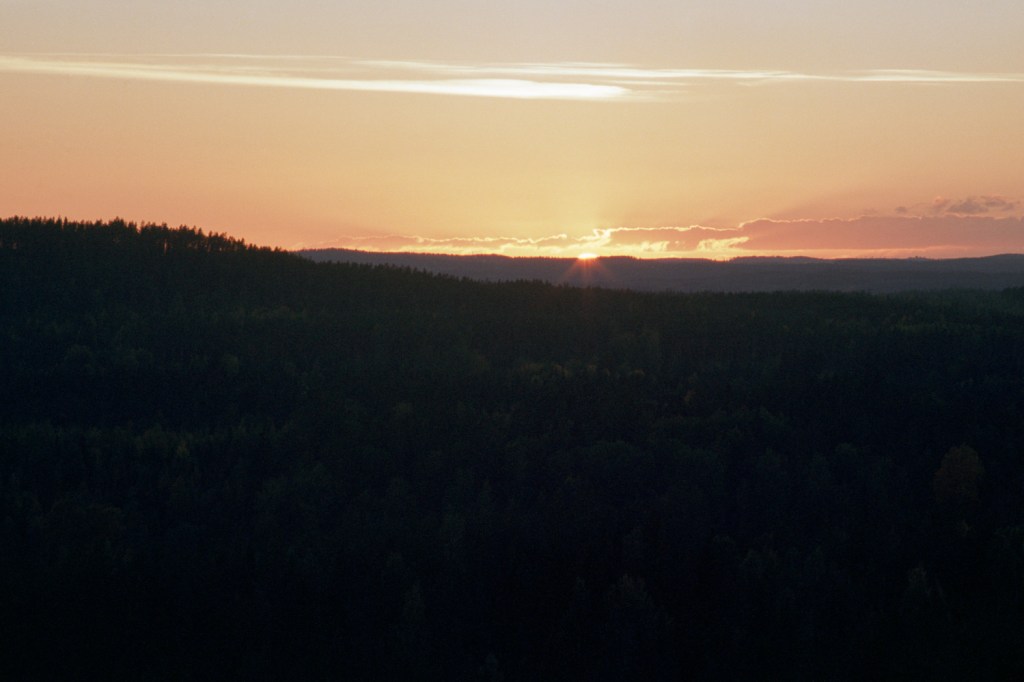 The Hyyppäänvuori Hill at Laukaa, near the city of Jyväskylä in Central Finland is a small hill with a nice view of the surrounding nature from it. There is a trail going up the hill and to the surrounding forests. I took the following pictures from the hill during an evening after work. The sun was already low when I arrived at the start of the trail, so I went the most direct way up the hill and enjoyed watching the sunset from there instead of taking a longer path through the forests.