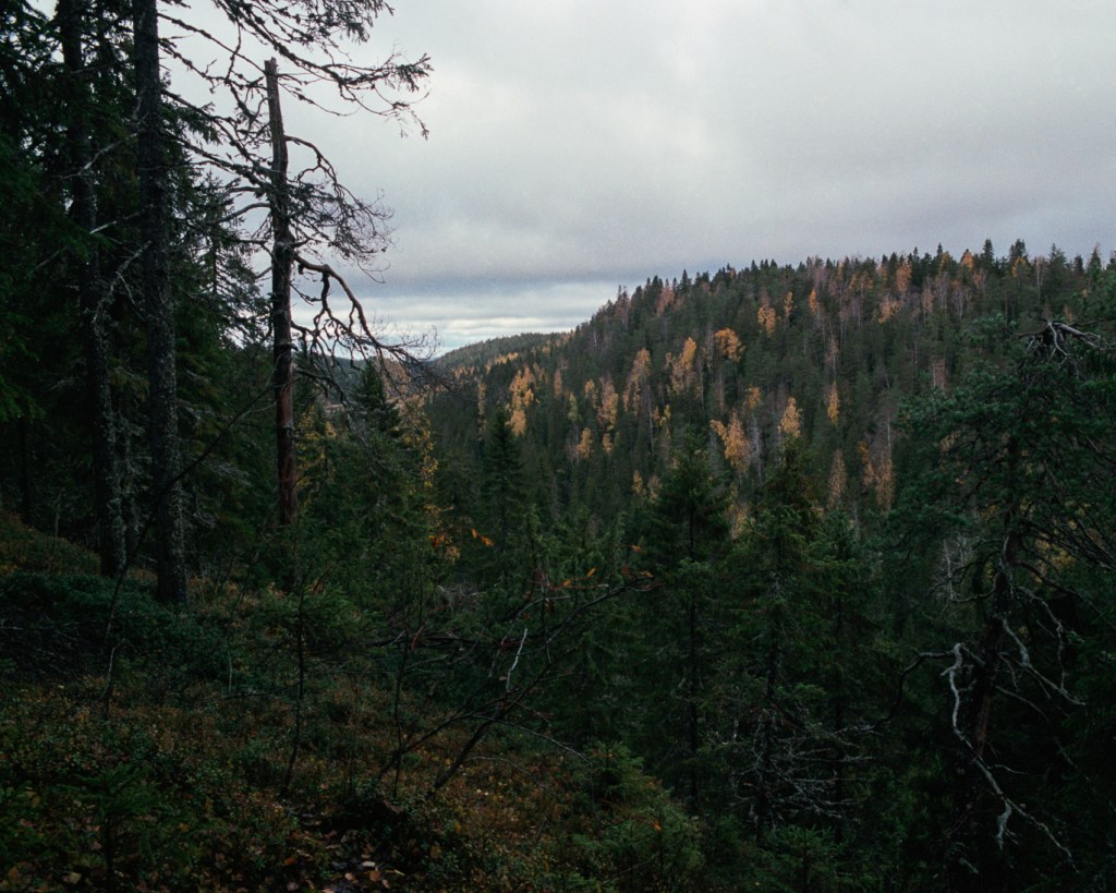The Kolvananuuro Ravine in Eastern Finland near the city of Jyväskylä is a small ravine with a trail going through it and to its cliffs. I took these pictures from the ravine when I walked through the trail during an autumn day.