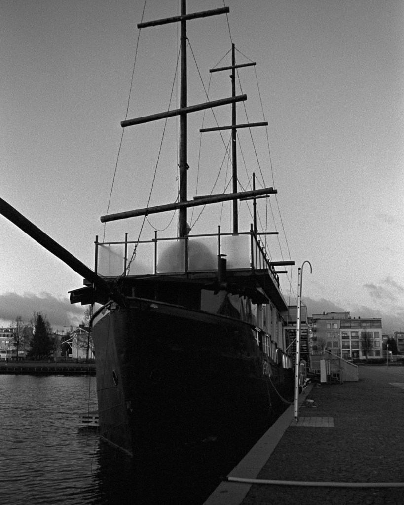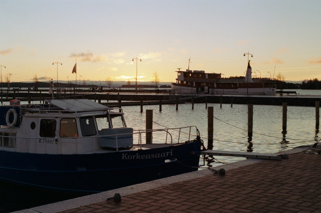 During a morning in autumn, I took some pictures from a port (or rather a marina) on the coast of the Kallavesi Lake and from the Puijo Hill in the city of Kuopio in Eastern Finland. The port was quiet during the early morning and most ships had been removed as a preparation for winter. I had originally planned to walk through a trail on the Puijo hill, but because I had already visited the port, I only went for a short walk near a (old?) ski hill.