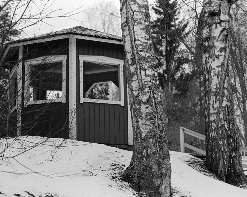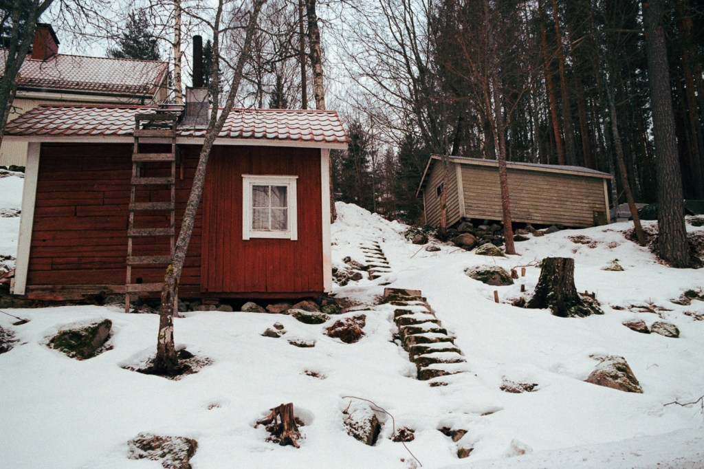 Around the Vaajavirta River near the city of Jyväskylä in Central Finland is a path going from a small island with old buildings to the hills near the coast of the river. I took the following pictures while walking through the path during this winter. On the island, there are pretty old wooden houses and from the path there is a nice view of the wide river and the hills around it. The city is visible from the top of the hill, but it is very difficult to walk up there during winter due to ice.