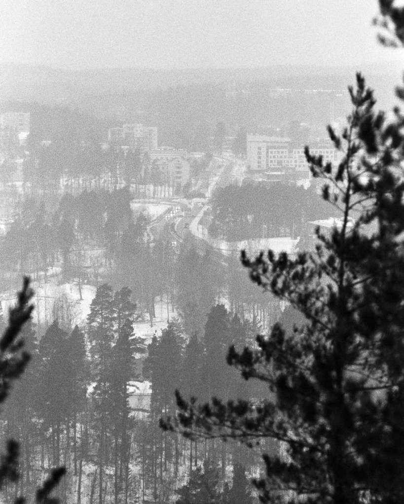 On the Kanavuori Hills, there are cottages and houses near the coast and a nature trail going up to the hills. There are a few places on the hills from where you can see the city of Jyväskylä to the west. I would not recommend going through the trail during winter, as it was extremly slippery and dangerous due to ice.