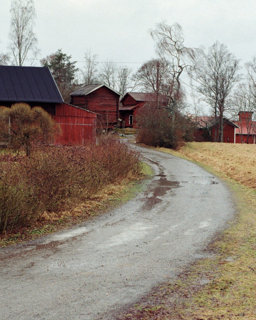 After walking from Koroinen past a dam, the path leads trough the Halinen museum village. The path continues for a short while after the village along the river.