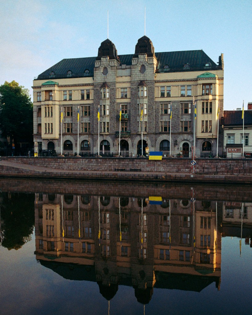 I took the pictures here while riding a bike along the coast of the Aurajoki River in the city of Turku in Western Finland. The Aurajoki River goes through the middle of the city, and there are many pretty sights along it. During the day there are many restaurants and bars there as well. I rode from near the University of Turku almost to the coast where the river flows in to the sea. These pictures were taken very early in the morning, so there weren’t many people around then.